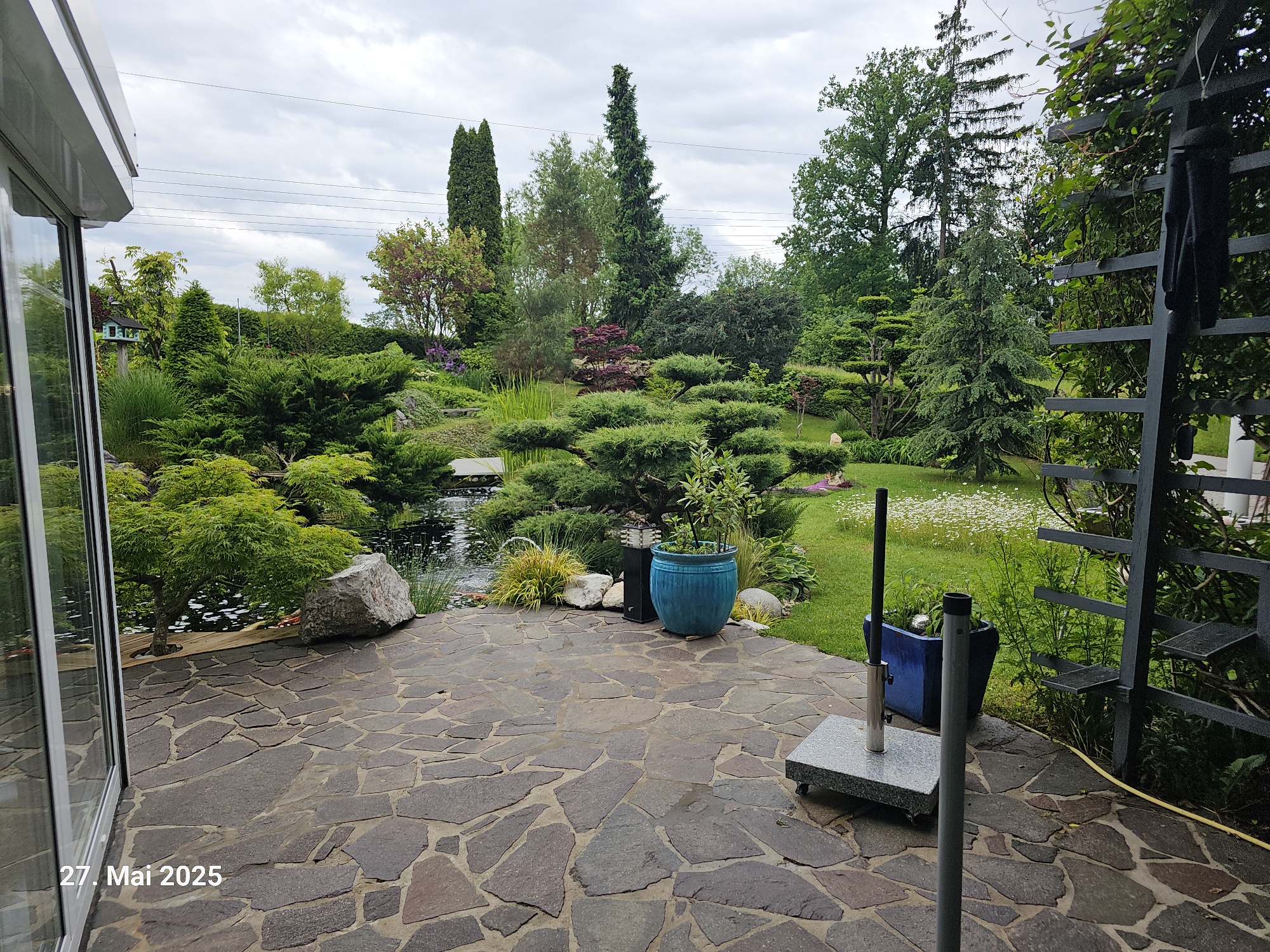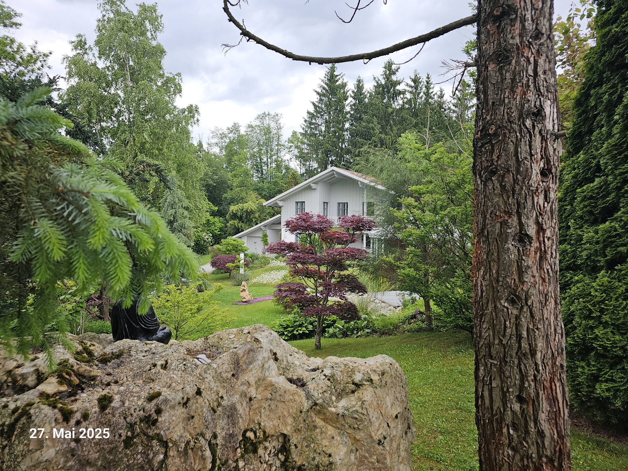 in herrlicher sonniger und an sehr heißen Tagen auch schattiger Alleinlage mit ca. 200m2