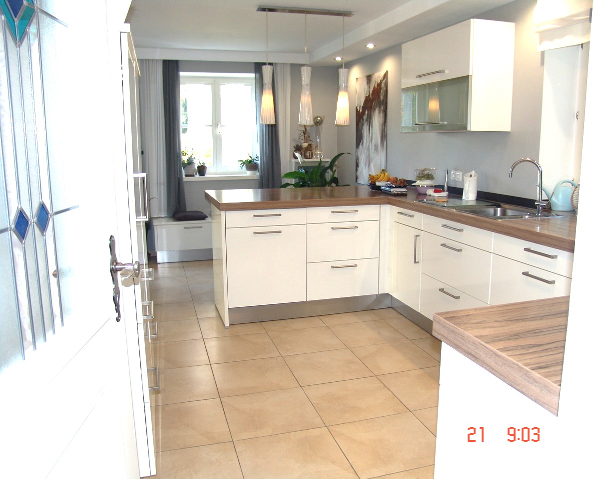 und Essbereich, in den Fluren im EG und im Flur im 1. OG. sowie im Bad.
